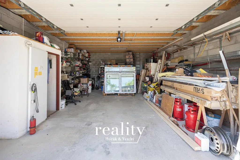 Na příjezdu k domu se nachází samostatně stojící zděná garáž o výměře 55 m² s velkorysými rozměry (8 × 6,1 × 3,16 m) a širokými vraty (4,27 × 2,75 m). Má také boční vstup a vlastní WC s umyvadlem, takže se skvěle hodí nejen jako garáž, ale i jako: