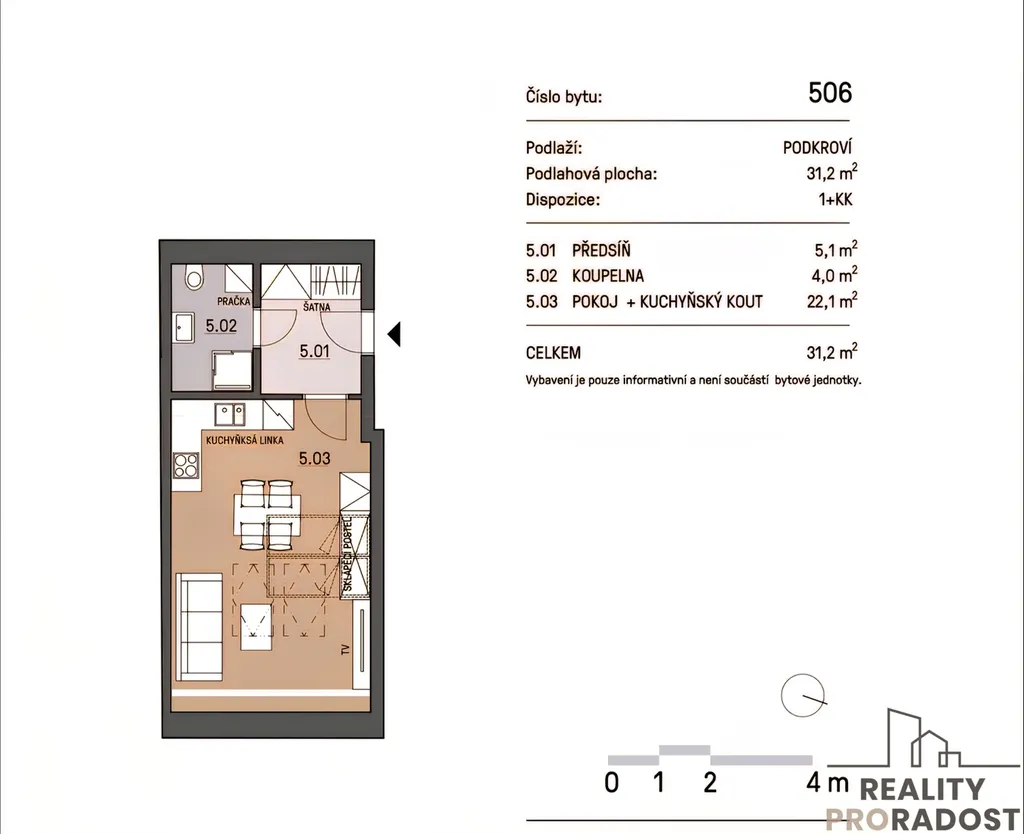 Hledáte pěkný byt 1+kk, o velikosti 31,2m2, v blízkosti centra, jste pár, studenti nebo pracující, tak je tenhle byt přímo pro Vás. Byt je vhodný až pro 2 osoby, zvířátka vítána. Byt je vybaven lednicí, varnou deskou, elektrickou troubou, myčkou a klimatizací. Byt je k nastěhování od 10.04.2026. Veškerá občanská vybavenost v okolí, do centra chůzí cca 5 minut, zastávka MHD cca 2 minuty. Prohlídky jsou možné po domluvě.