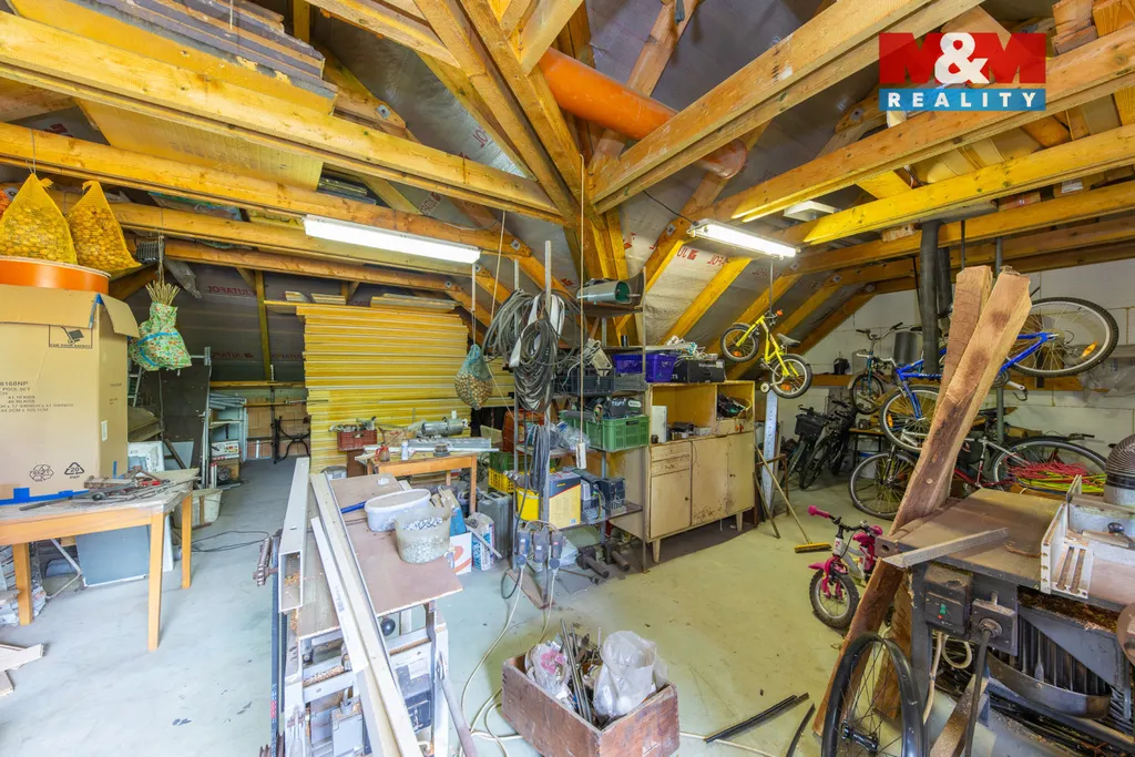 Zastavěná plocha sestává ze dvou staveb spojených střechou. Jedna stavba je obytná, jsou zde dva byty 4+kk, 4+1 (114 m2 a 117 m2) a půda. Druhá je kolaudovaná jako hospodářský přístřešek: v přízemí je garáž 50 m2 (garáž a velká dílna), patro 85 m2 je připravené pro další prostory (hrubá stavba, byt, kanceláře..) Výhodou je, že každý byt má vchod zvenku zvlášť. Na pozemku jsou tři parkovací místa z toho jedno zastřešené. Zahrada je upravená s odpočinkovou zónou, kde se nachází pergola. Dům má krom veřejného vodovodu i vlastní studnu a dvojí rozvod vody. Topení je řešené také velmi ekonomicky. Financování zajišťujeme. Pro více informací volejte makléři
