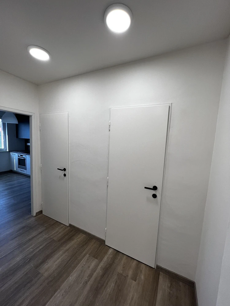 Dva prostorné pokoje s přívodem denního světla umožňují vybavení dalším nábytkem. V každém pokoji je vyvedeno místo pro připojení TV a další elektroniky, které je také osazeno přívodem internetu, kdy je možné připojit TV k internetu prostřednictvím kabelu, který zajišťuje lepší stabilitu připojení. Sledování Netflixu bude dokonalé. V žádném z pokojů není radiátor, ale vytápění probíhá podlahou a stropem, v pokojích je tedy mnohem více místa. V pokojích i kuchyni jsou okna osazena žaluziemi.