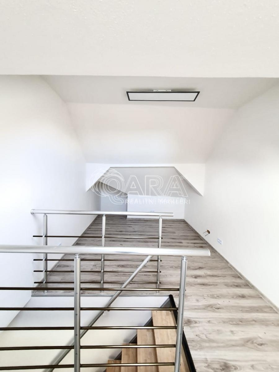 V druhém podlaží bytu je otevřený prostor s dvěmi střešními okny. Pod okny je místo pro manželskou postel, kde Vás bude budit slunce díky orientaci na východ. Prostor je opticky oddělený zábradlím schodiště a v druhé části se nachází kout vhodný pro obývací část s TV přípojkou.