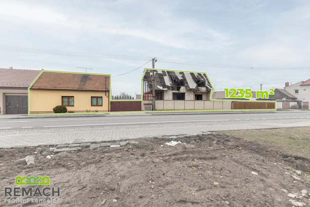 Dva domy, zastavěná plocha každého z nich je 191 m² a 101 m². Celková rozloha pozemku je 1235 m². Z pravé strany od rozestavěného domu bylo počítáno s velkou garáží, přičemž mezi domy se nachází další prostor pro stavbu třetího rodinného domu. Za domy a mezi nimi je prostorná zahrada.