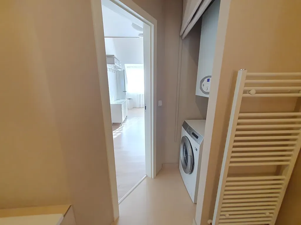 prostorná hlavní koupelna s pračkou s parním praním, sušičkou a plynovým kotlem,