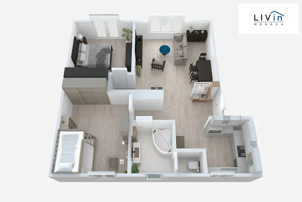 Byt je vhodný pro pár nebo rodinu.