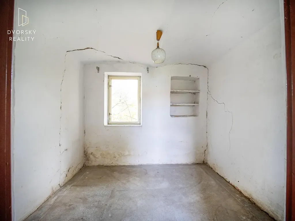 Obytná část je menší (dvě větší a jedna menší místnost), zato hospodářské prostory jsou opravdu rozsáhlé – ideální pro přestavbu na dílnu, ateliér nebo sklad.