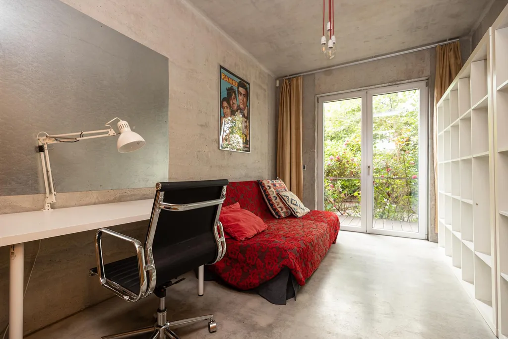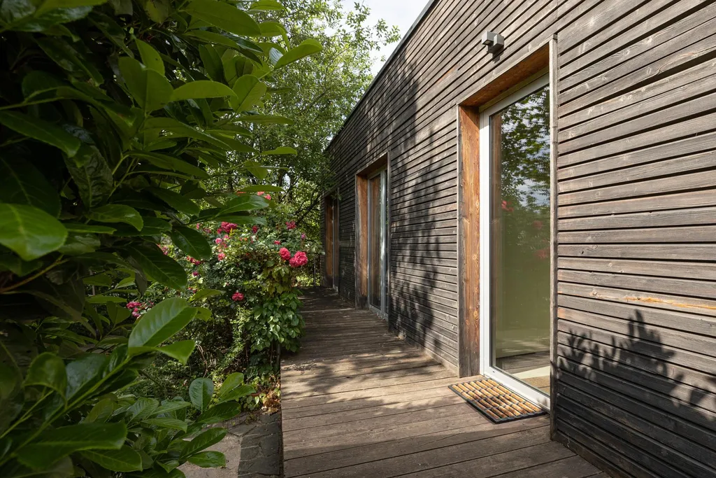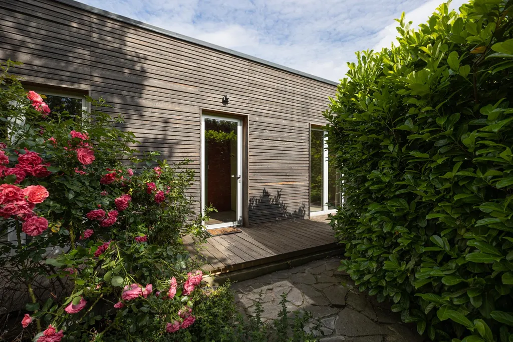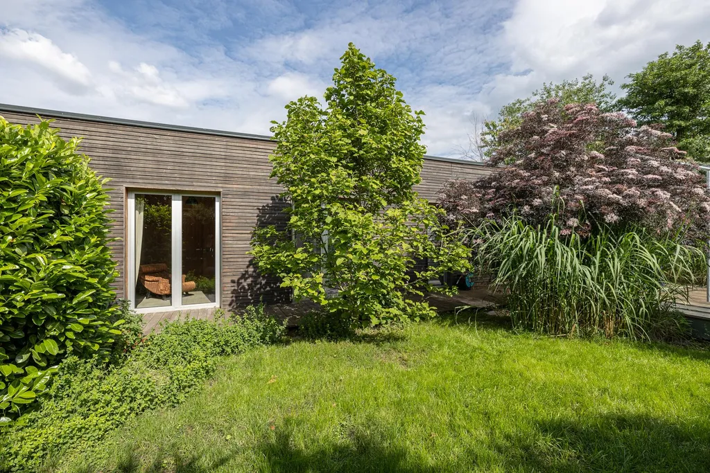 Každý obytný pokoj disponuje přímým vstupem na terasu a následně do zahrady v anglickém stylu o rozloze 570 m. Tento promyšlený architektonický prvek zajišťuje maximální propojení interiéru se zelení, dostatek denního světla a jedinečný pocit vzdušnosti a svobody.