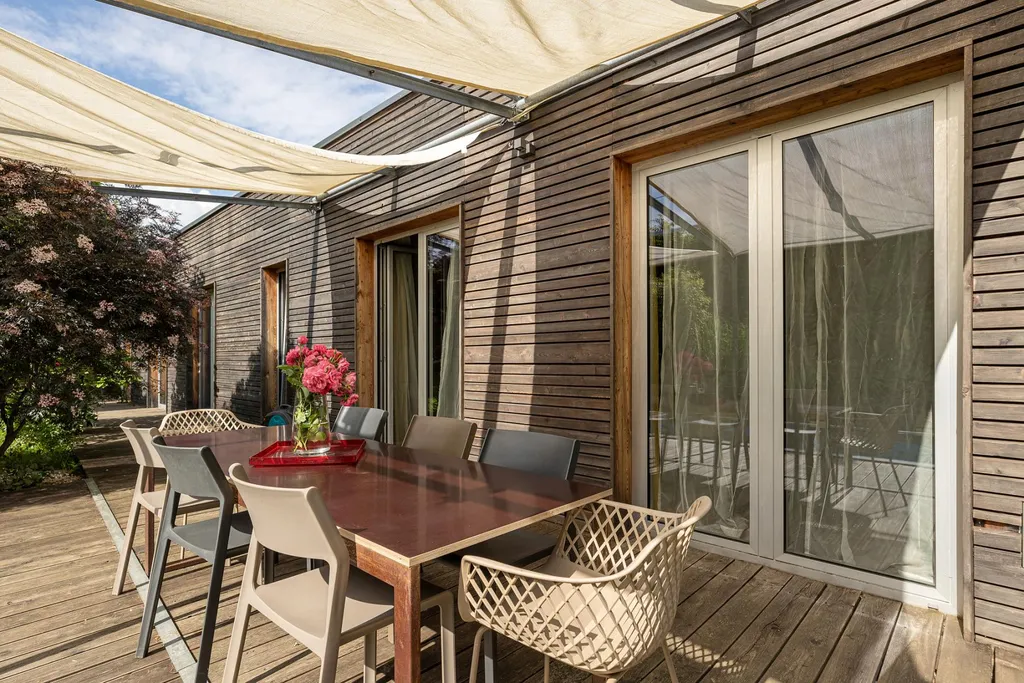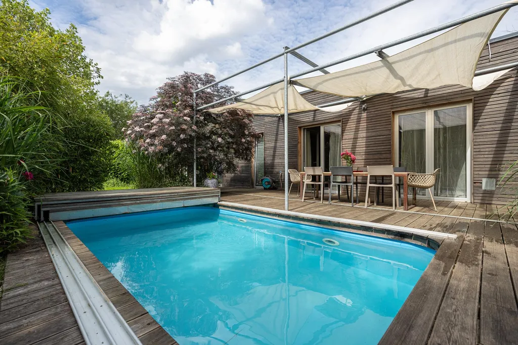 Zahrada nabízí soukromí a vytváří oázu klidu, která je ideálním místem pro relaxaci i aktivní trávení volného času. Na terasu plynule navazuje venkovní bazén s technologií slané vody. Zastíněná terasa představuje příjemný prostor pro venkovní posezení, rodinné večeře či přátelská setkání