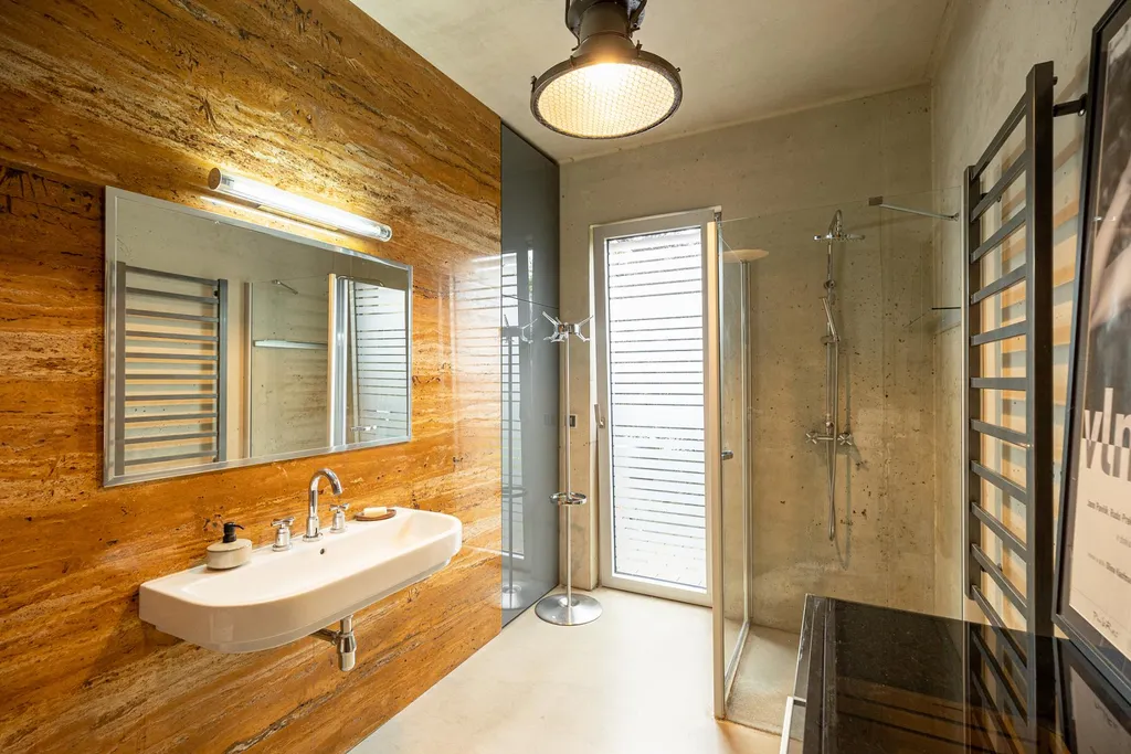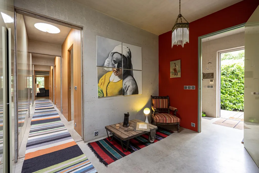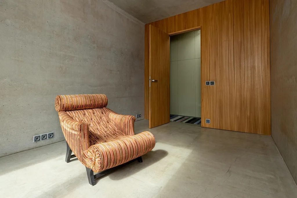 Dům je navržen v konceptu lineární architektury, přirozeně propojuje interiér s exteriérem a vytváří harmonický celek s okolní zahradou. Konstrukce z betonových jednotek v kombinaci s interiérovými prvky dodává domu nadčasový industriální charakter, jenž osloví i ty nejnáročnější klienty hledající originální a stylové bydlení.