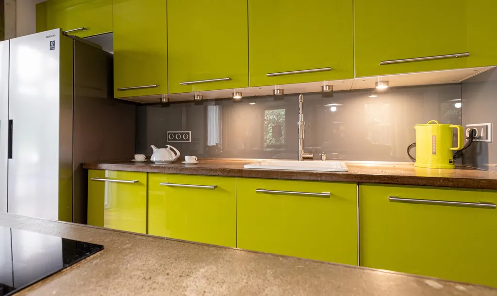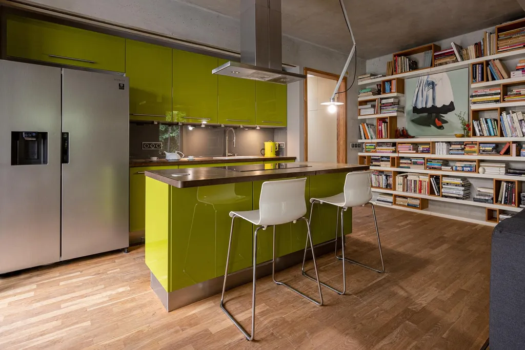 Dominantním prvkem domu je velkorysý obývací prostor s krbem na dřevo, který tvoří přirozené srdce celého domu. Tento prostor je plynule propojen s moderní kuchyní vybavenou vestavěnými spotřebiči, včetně americké lednice s integrovaným filtrem na vodu, a vytváří ideální prostředí pro rodinný život.