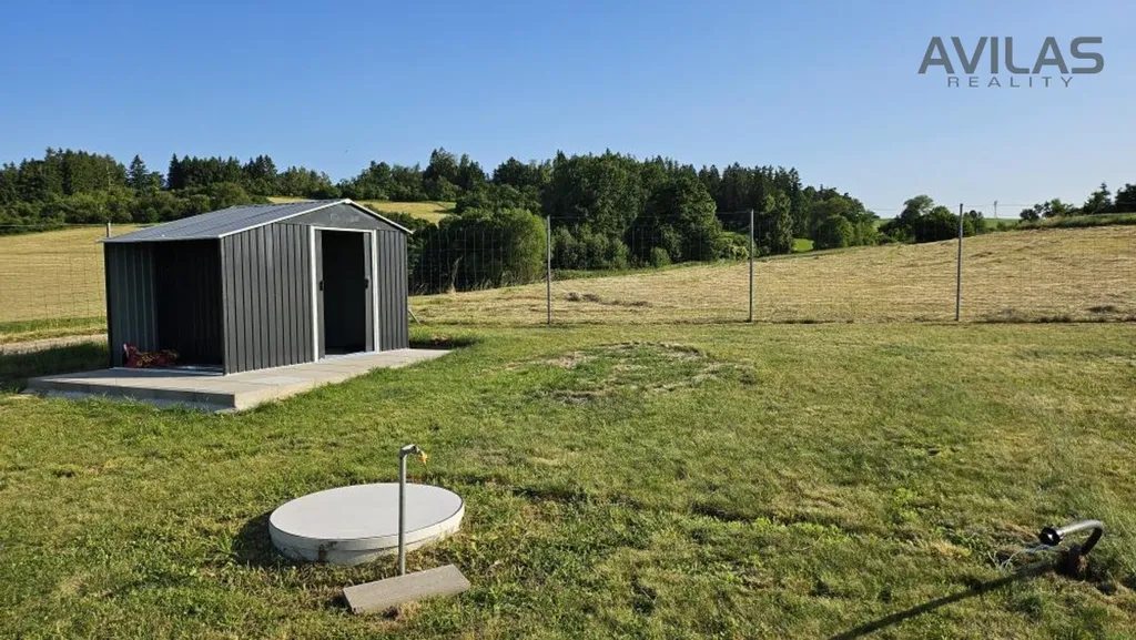 Na pozemku se již nachází malý zahradní domek, vhodný jako technické zázemí.