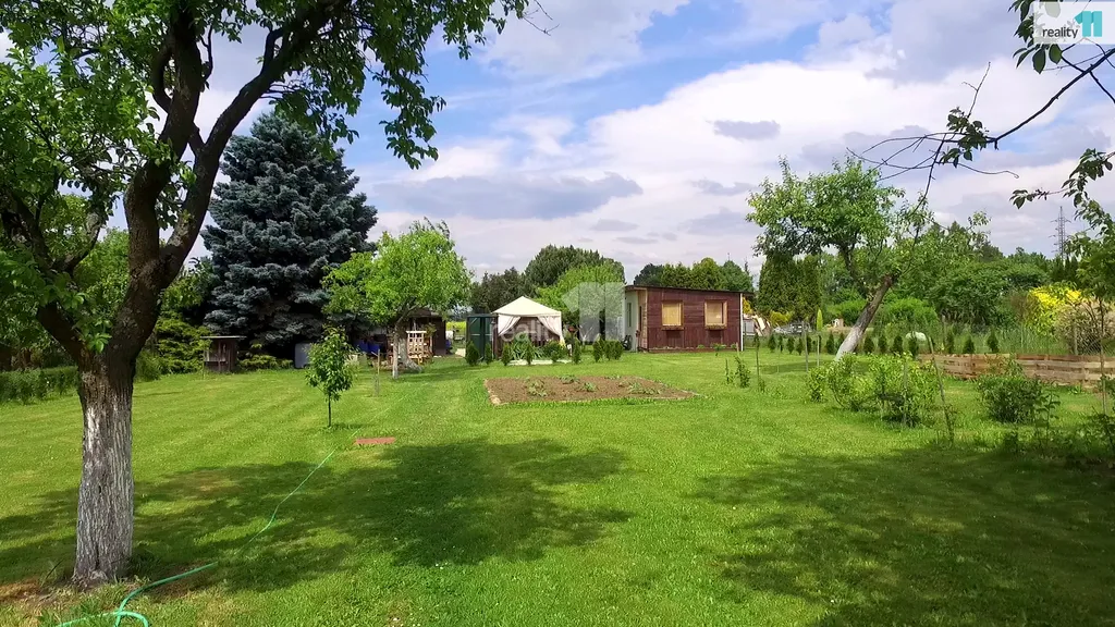 Reality 11 Vám zprostředkují prodej stavebního pozemku v zahrádkářské osadě o výměře 1068 m², na kterém se nachází chatka (dřevostavba), garáž a sklep. Rovinatý pozemek má na šířku 13 m a na délku 84 m a je možné na něm postavit hlavní stavbu (dům) pro rekreační účely o zastavěné ploše 100 m², který může mít max. 1 nadzemní podlaží a šikmou střechu (s možností využití podkroví). Další stavby, jako garáž, sklad, dílna či bazén se musí vejít do koeficientu zastavěnosti 0,35 %, tedy v tomto případě, můžete zastavět plochu pozemku až 374 m². Na pozemek je zavedena elektřina a městský vodovodní řád. Kanalizace by se dala řešit čističkou či septikem.