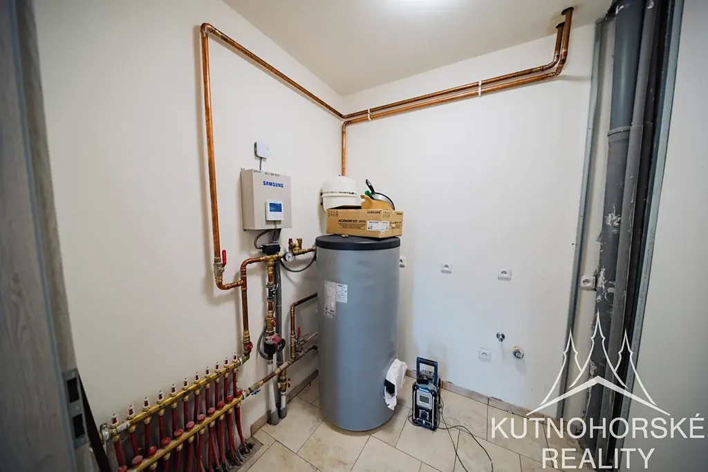 Vytápění: Špičkové tepelné čerpadlo Samsung (monoblok) a podlahové vytápění v celém domě.