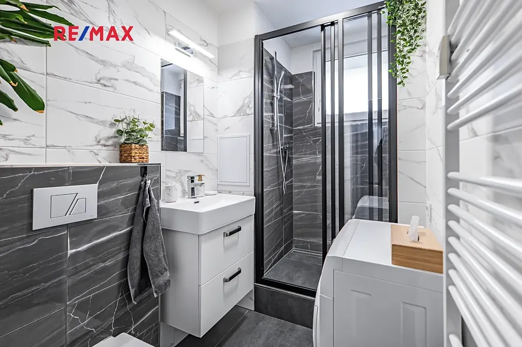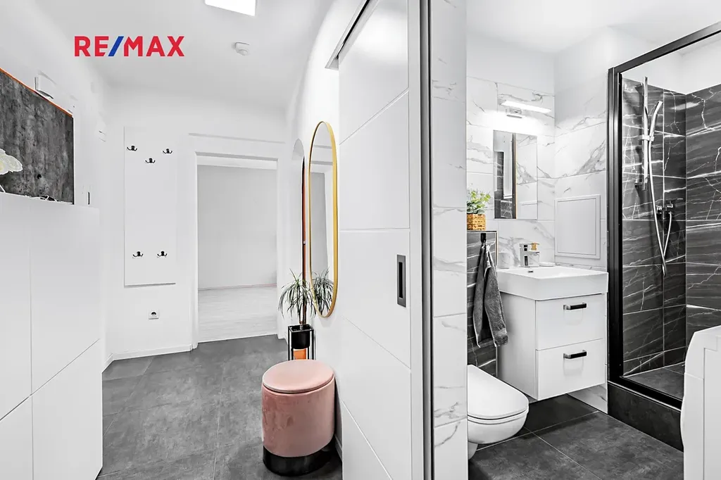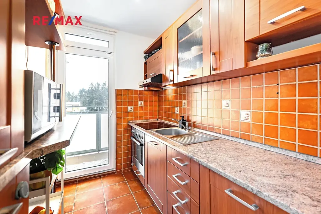 Byt se nachází ve třetím patře bytového domu bez výtahu, o jehož zabudování se právě jedná v rámci SVJ. Dům je zateplený a má nová plastová okna. Byt jako takový rovněž prošel rekonstrukcí, takže Vám dodá na pocitu útulného bydlení ve svěžím slunném domově. Jeho dispozice je velice praktická, jelikož obývací pokoj a ložnice jsou od sebe umístěny na opačných stranách bytu, což Vám zaručí klidné a pohodové spaní pro případ, že by někdo další dále aktivně využíval obývací pokoj. Byt je tak vhodný pro jednotlivce náročnějšího na prostory, dále pro pár, který hodlá započít novou životní kapitolu, nebo třeba i pro začínající rodinu o třech osobách.