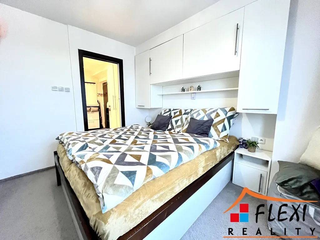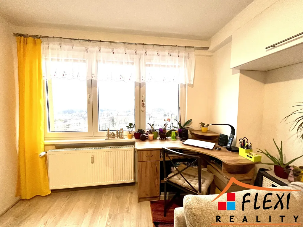 Byt je celkově zařízený jak lze vidět na fotkách (krom TV, počítač. stolku, židlí a sedačky, kterou je možno odkoupit).