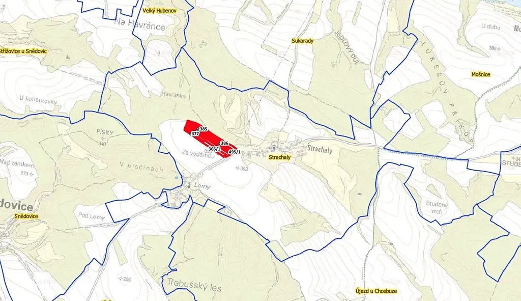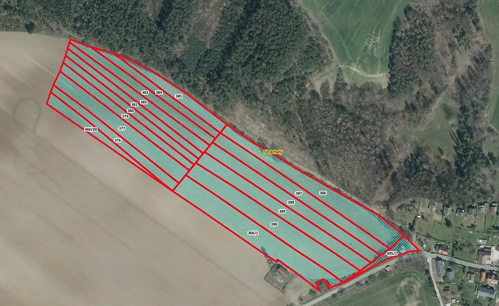 Nabízíme k prodeji zajímavý soubor pozemků ve 100% vlastnictví o celkové velikosti 54154m v katastrálním území Strachaly. Pozemky se nachází v okrajové části obce a jsou v současné době obhospodařovány místním zemědělským subjektem s krátkou výpovědní lhůtou. Nabídky v této lokalitě jsou občasné. Nepropásněte příležitost ke koupi pozemku v tomto katastru.