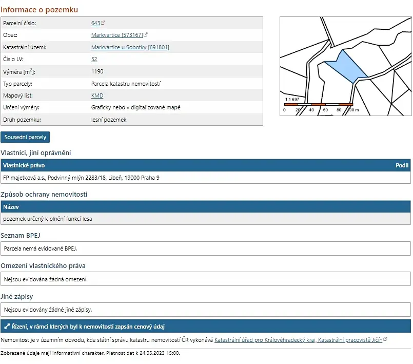 Chcete dostávat emailem podobné nabídky prodeje lesů v Markvarticích (okr. Jičín)?