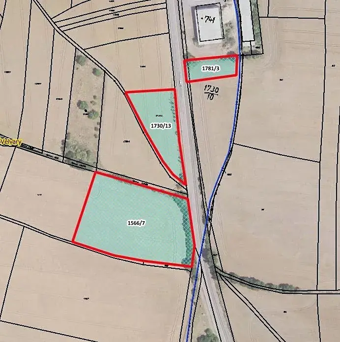 V případě, že hledáte větší pozemek, tak alternativou je sousedící pozemek p.č. 1566/7 výměře 8.723 m2. Je uvedený na obrázku. V případě, že hledáte nějaký menší, tak Vám můžeme nabídnout ve zjednodušené evidenci (PZE) p.č. 1781/3 o výměře 1.156 m2.