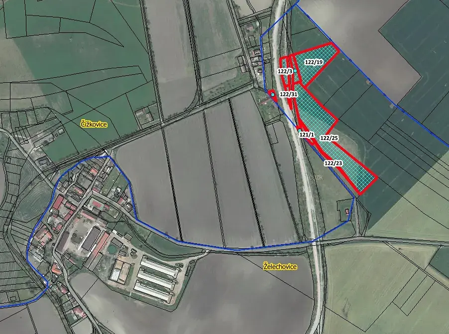 Nabízíme k prodeji soubor pozemků p.č. 119, 121/1, 121/2, 122/19, 122/22, 122/23, 122/25, 122/3, 122/31 a 122/4 o celkové výměře 24 795 m2 v k.ú. Želechovice, vedené na LV 218. Pozemky je možné koupit jako celek nebo jednotlivě – dle domluvy. Pozemky jsou řádně obhospodařovány místním zemědělcem, který dodržuje osevní postupy. Smlouva je uzavřena na dobu neurčitou s výpovědní lhůtou 3 roky. Pozemky jsou tedy vhodné k vlastnímu hospodaření, popřípadě směnu.