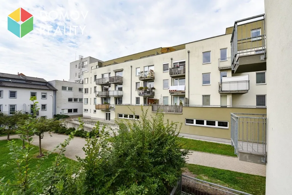 Uvnitř bloku bytových domů se nachází velmi příjemný parčík, který nabízí klidné místo k odpočinku.