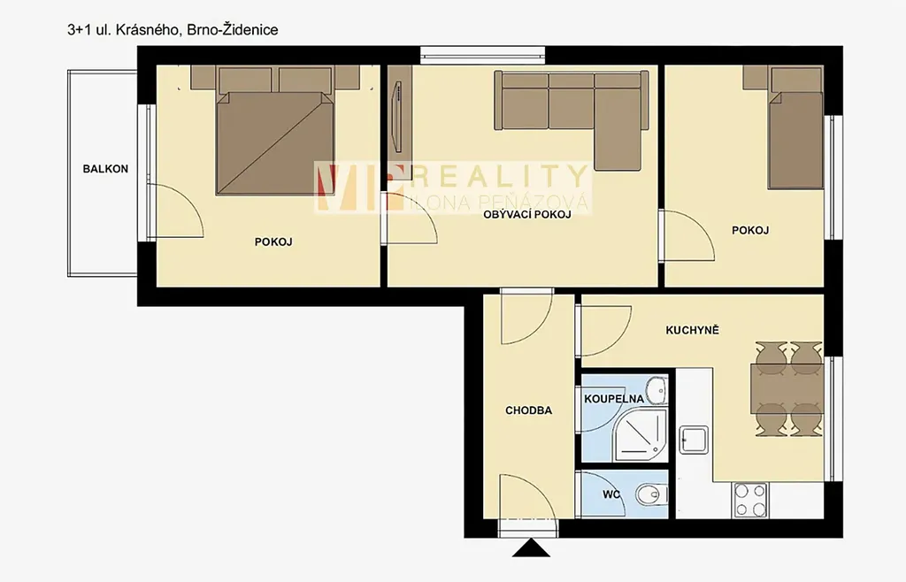 Prodej bytu 3+1 s balkonem, 57 m², Brno – Židenice, ul. Krásného