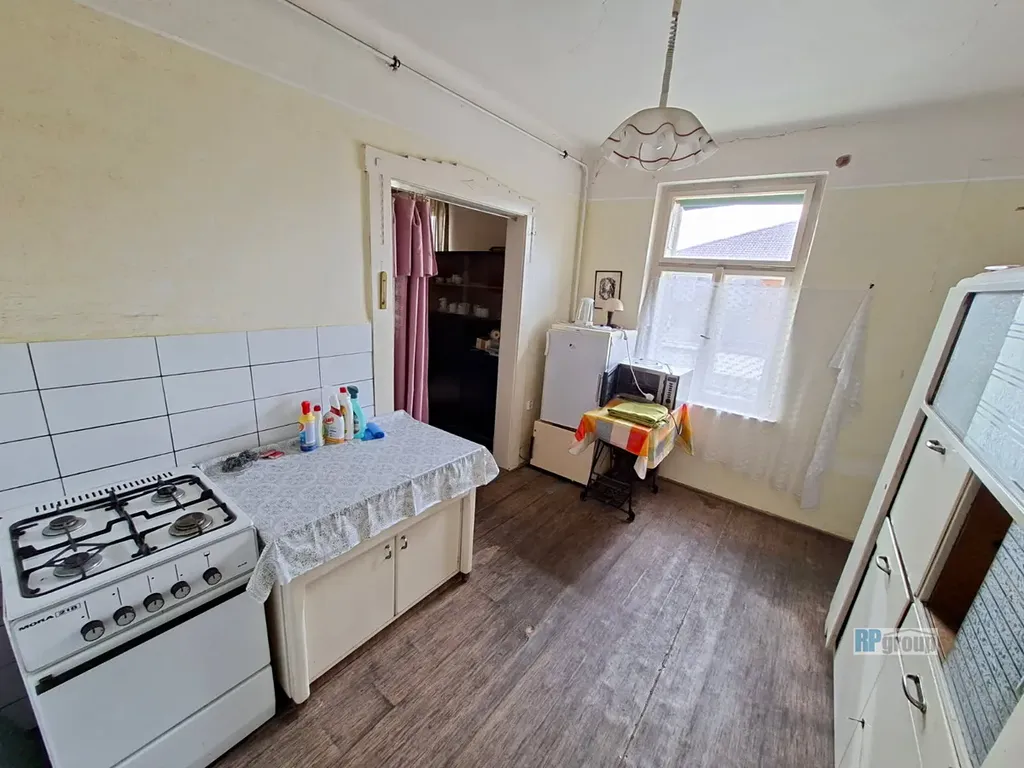 Nabízíme k prodeji RD 3+1, který se nachází na pozemku dvou sousedících parcel v celkové výměře 912 m2. Dům je cca 100 let starý a je určený k celkové rekonstrukci. Je tvořen vstupní prostornou verandou, chodbou, kuchyní s jídelním koutem a vstupem do obývacího pokoje, dále pak ložnicí. V přízemí dále najdeme další pokoj bez okna, koupelnu s vanou (bojler), prádelnu, samostatnou toaletu, komoru a vstup do sklepa, který je pouze pod částí domu. V patře pak najdeme další pokoj a velkou půdu možnou přestavět na obytné prostory. Součástí domu je také bývalý obchod, který není s obytnou částí propojen a má vlastní vstup. Po případných úpravách by se dal obytné části také připojit. Výhodou nemovitosti je napojení na kompletní inženýrské sítě ( vodovod, kanalizace, elektřina, plyn ). Na pozemku také najdeme vlastní studnu. Vytápění objektu je řešeno WAW a kamny. Střecha betonové tašky.