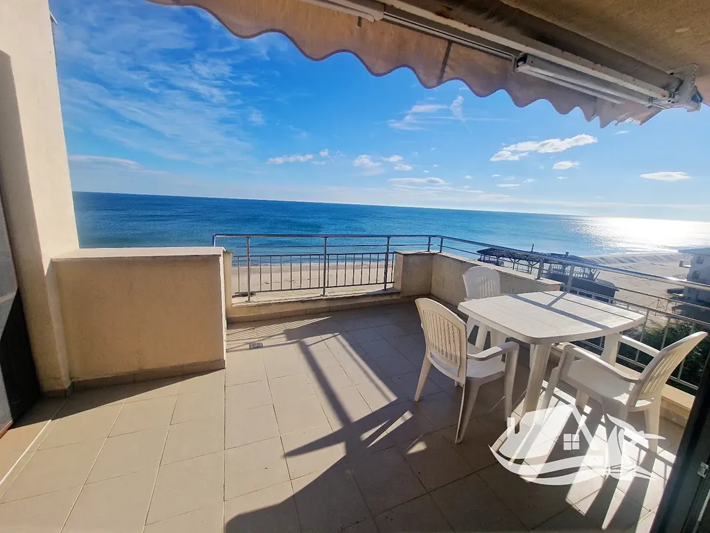 Apartmán se nachází v pátém, posledním patře moderního rezidenčního komplexu s výtahem a nabízí pocit soukromí, prostoru a otevřenosti. Díky umístění přímo na pláži se z každé místnosti i obou teras otevírá nádherná, ničím nerušená panoramatická vyhlídka na Černé moře. Interiér působí svěže, elegantně a přirozeně propojuje pohodlí s atmosférou přímořského bydlení.