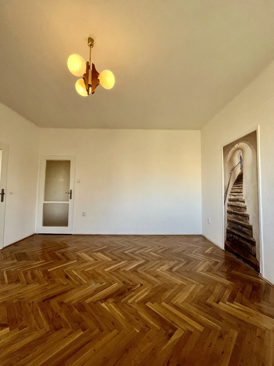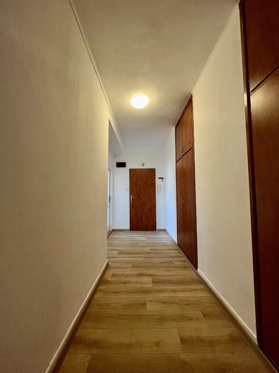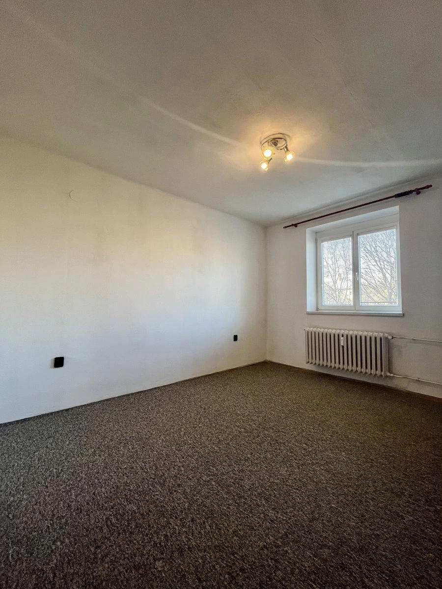 Nabízí jeden neprůchozí pokoj v zadní části bytu.