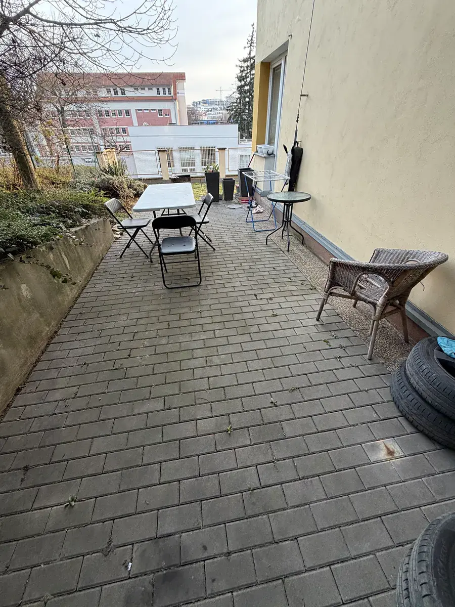 Tento byt je výjimečný především svou jižní orientací, díky které je celý den krásně prosluněný a velmi příjemný k bydlení. Dalším unikátním prvkem je velkorysý venkovní prostor, který v širším centru Prahy jen tak nenajdete. K bytu o ploše 37 m² náleží 21 m² vydlážděné terasy a navazující zahrada o velikosti 76 m², která nabízí obrovský potenciál pro další úpravy a vytvoření skutečně výjimečného venkovního zázemí.