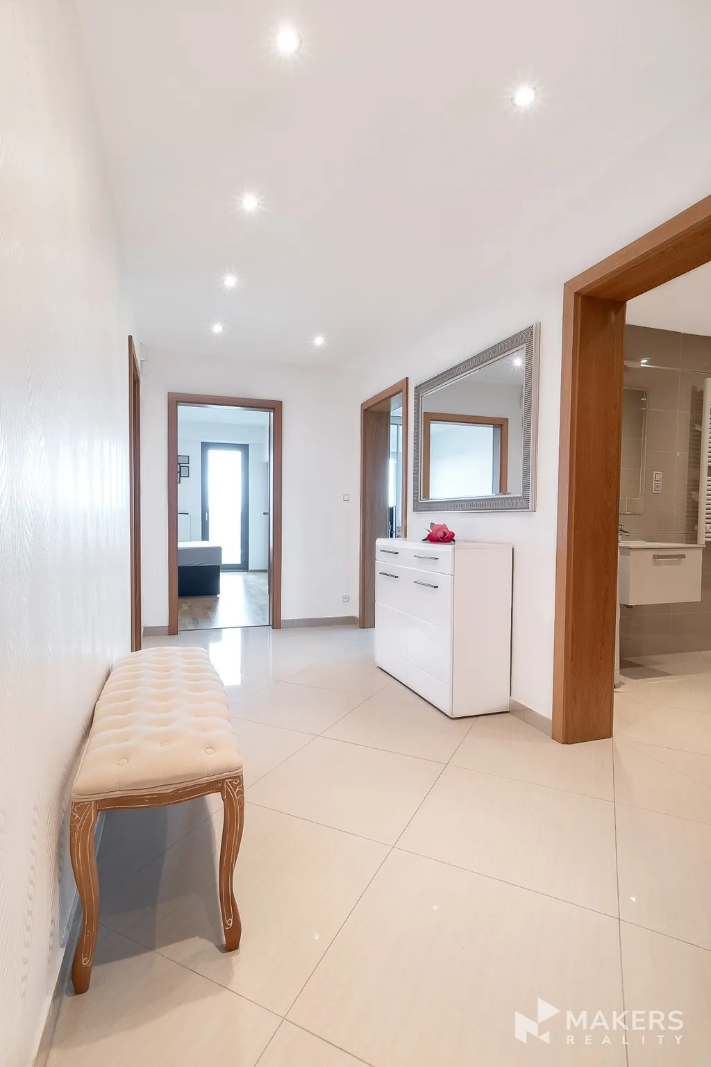 Pohodlné bydlení zajišťuje drahý nábytek a spotřebiče, laminátové podlahy s konvektory, termostat, velkoformátová dlažba, bezpečnostní vstupní dveře, videotelefon. Celý dům je zabezpečen bezpečnostním systémem se vstupem do budovy na čip, recepční služba 24 hodin denně.