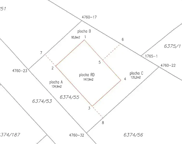K jednotce č. 1 náleží společné užívání parkovací plochy před domem o výměře 135 m2 (plocha A v plánku) s druhou jednotkou a výhradní užívání zahrady o výměře 96 m2 (plocha B v plánku).