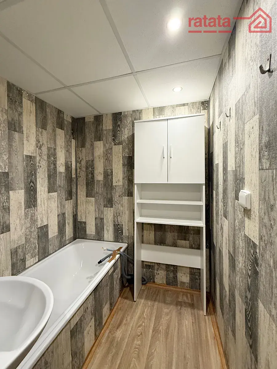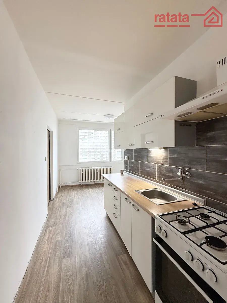 Je zde kuchyňská linka, plynový sporák, vana s umyvadlem a WC. Na podlahách je položeno lino s dřevodekorem a koberce. Byt je volný k nastěhování IHNED.
