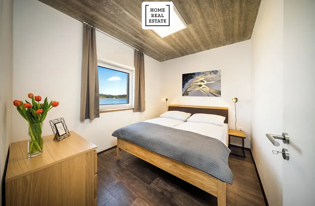 Home Real Estate si dovoluje exkluzivně nabídnout k prodeji plně vybavený designový 2+kk apartmán s výhledem na Lipně o podlahové ploše 43 m2 a balkonem 6 m2 , který se nachází v projektu Costa Plana Lipno.