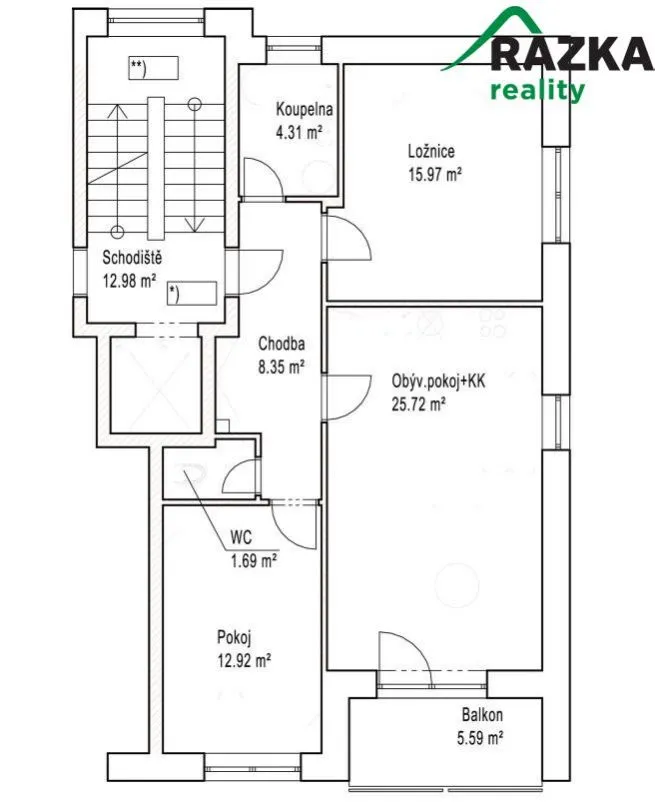 Bytová jednotka o dispozici 3+kk a podlahové ploše 69,03 m2 je situována ve 2. nadzemním podlaží bytového domu s výtahem. Velkou výhodou je balkon o velikosti 5,59 m2, který nabízí příjemné místo pro relaxaci. Součástí bytu je také sklepní kóje.