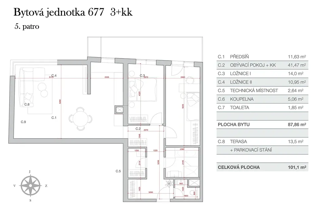 Dispozice bytu 3+kk: