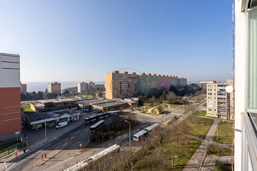 Byt se nachází v osmém patře s výhledem na Prahu a Pražský hrad. Byt je situován na východní i západní stranu.