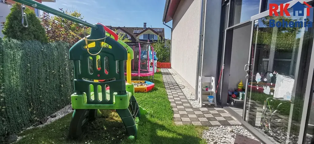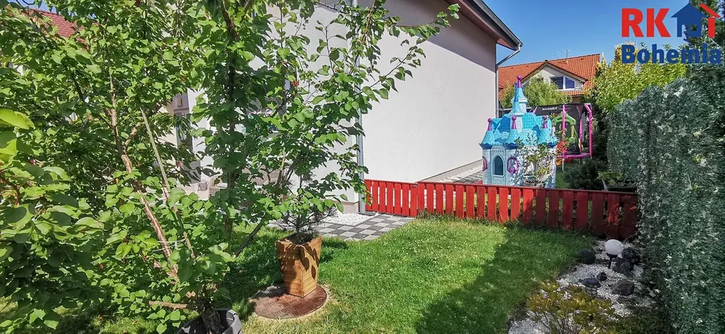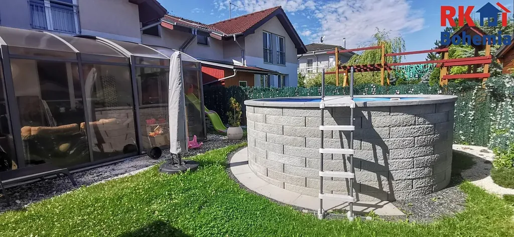 Za domem se nachází velký dřevěný domek a mnoho herních prvků pro děti, což z něj činí skvělé místo pro rodinné aktivity. Dále je zde vybudovaný zděný nadzemní bazén a zimní zahrada, která je ideální pro odpočinek.