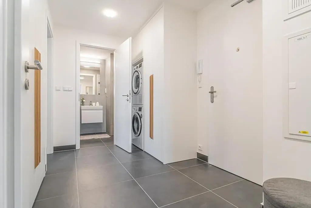 Nabízíme k pronájmu kompletně vybavený byt o dispozici 2+1 o výměře 57 m2 s lodžií 5,5 m2 v 11. NP v 11patrovém bytovém domě LOOX přímo u metra Prosek.
