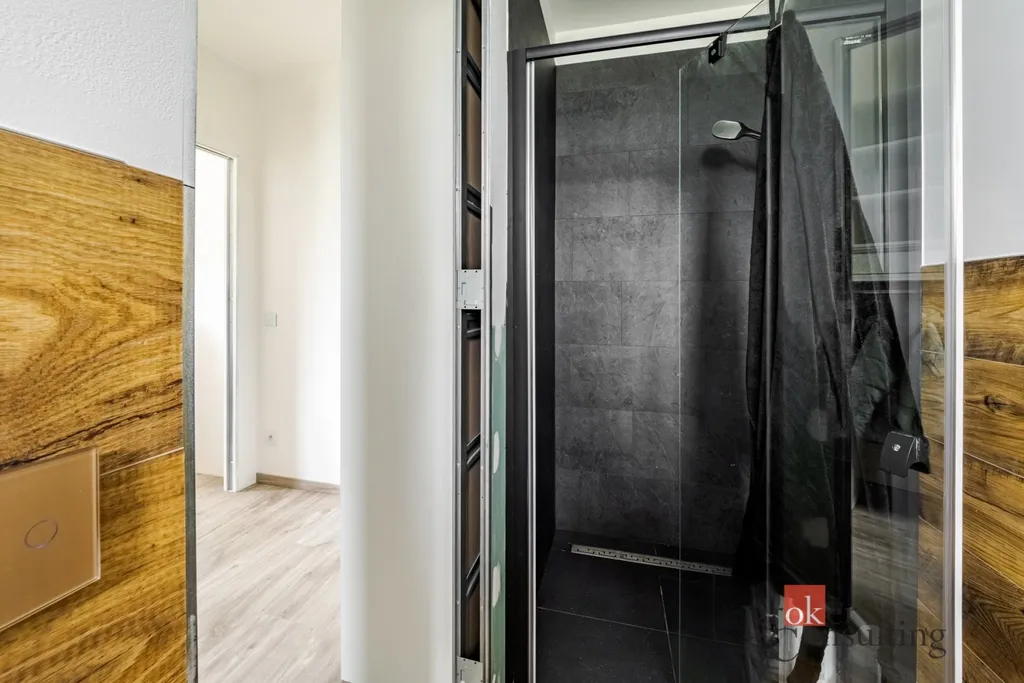 V koupelnách je potřeba doplnit některé prvky, například topné žebříky, zrcadla a umyvadlo v menší koupelně. V interiéru jsou částečně instalovány obložky dveří, zbývající části je možné dokončit dle vlastního výběru budoucího majitele.