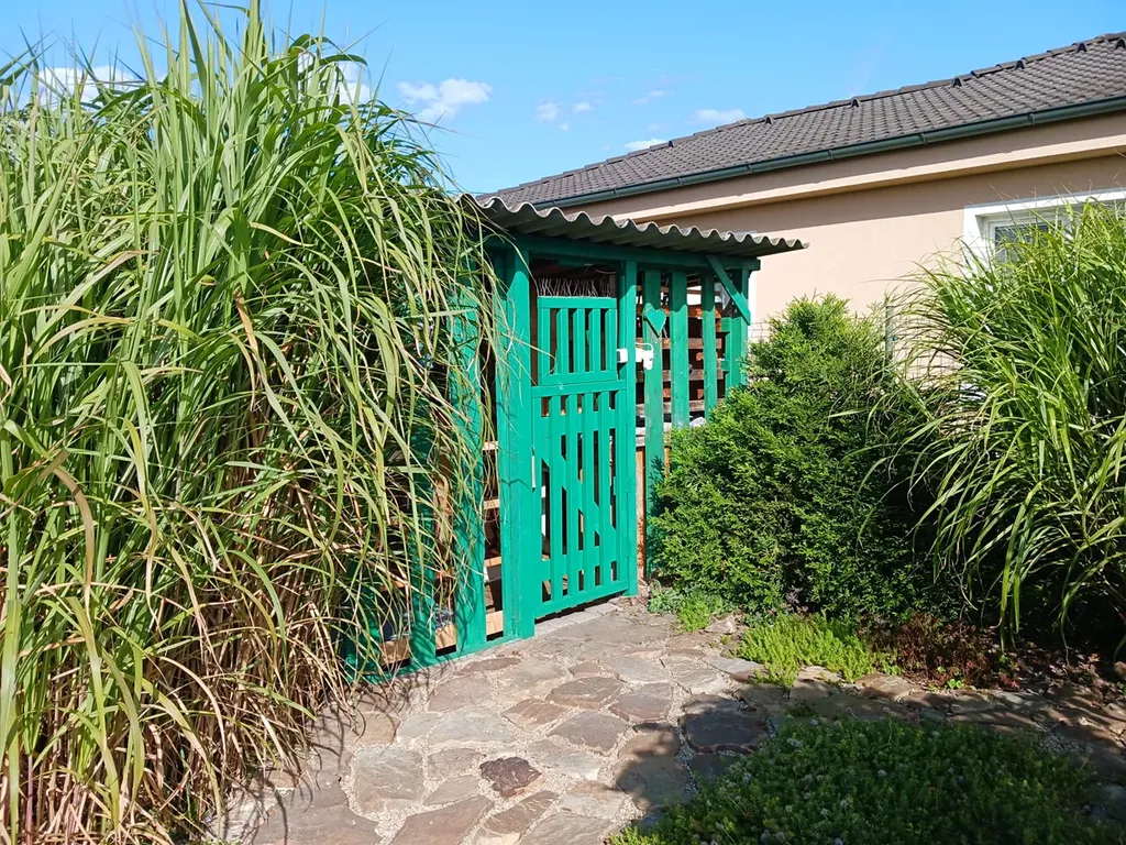 Zahrada o velikosti 583 m2 je udržovaná, osázena vzrostlými ovocnými stromy, okrasnými dřevinami, květinami a bylinkovým záhonem. Zahrada je vybavena kruhovým bazénem o průměru 4 m, dětskou zahradní sestavou, dřevníkem a parkovací plochou.