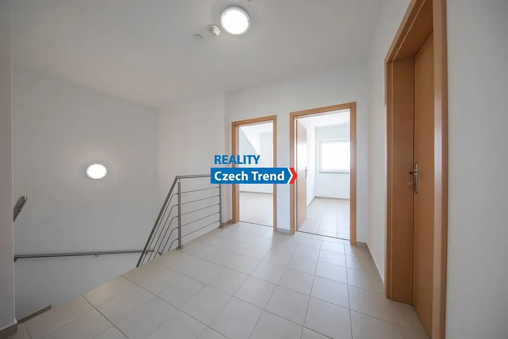Pronájem novostavby moderního, rodinného domu za cenu bytu. Nabízíme k pronájmu řadový, rodinný dům, 4+kk s garáží a venkovním parkovacím stáním na ulici Šípková v Olomouci. Velmi nízké nájemné je nižší, než nájemné srovnatelně velkého bytu. Měsíční zálohy na elektřinu vč. topení jsou cca 5.000,- Kč, na vodu cca 1000,- Kč. Celková velikost pozemku k domu je včetně zastavěné plochy 262m². Dům je postaven z cihel Porotherm, okna trojskla, značkové armatury Hansgrohe. V přízemí domu je vstupní chodba, koupelna se sprchovým koutem, umyvadlem, toaletou a přípojkou na pračku, technická místnost s elektrickým kotlem a bojlerem na ohřev teplé vody, kuchyňský kout s kuchyňskou linkou obsahující sporák s troubou, digestoř, dřez s baterií a přípravu na myčku, obývací pokoj s francouzským oknem a vstupem na zastřešenou terasu a schodiště do patra. V patře domu jsou tři ložnice a koupelna s vanou, umyvadlem, toaletou, bidetem a přípojkou na pračku. V celém domě je na podlaze dlažba s teplovodním podlahovým vytápěním. Dům je připojen na optický kabel, rozvody internetu a TV signálu jsou v každém pokoji. V místě je veškerá občanská vybavenost a nové, oplocené, dětské hřiště. MHD v dosahu. Volný od 15.4. 2026. Kauce je ve výši dvou měsíčních nájmů, provize pro RK činí jeden měsíční nájem + DPH. Pronajímatel preferuje pracující rodinu bez domácích mazlíčků.