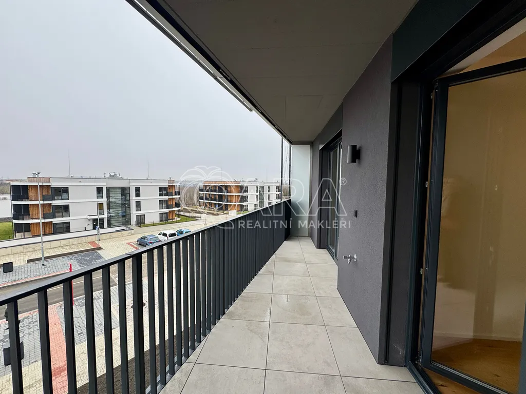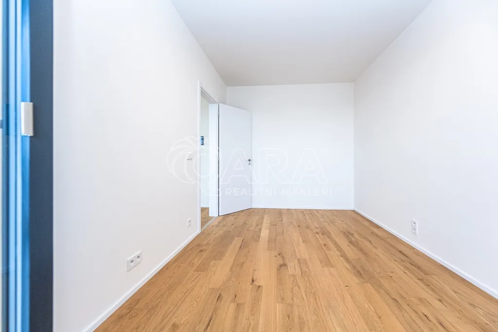 Byt sestává ze vstupní chodby, koupelny s vanou a toaletou, obývacím pokojem se zcela novým, kompletně vybaveným kuchyňským koutem, ložnice a vstupem na prostornou terasu s výhledem na nově vznikající zástavbu rodinných domků se zahrádkami. Nízkoenergeticky náročná jednotka disponuje chytrou domácností, kvalitní dřevěnou podlahou a je zpracována ve vysokém standardu. V budově je k dispozici také kočárkárna.