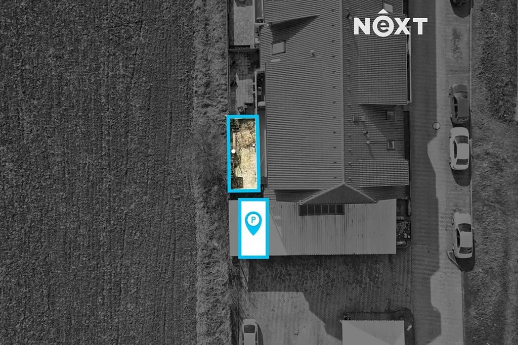 K bytu náleží také kryté privátní parkovací stání o velikosti 15 m², ze kterého je přímý a pohodlný vstup brankou na vlastní zahrádku s terasou.
