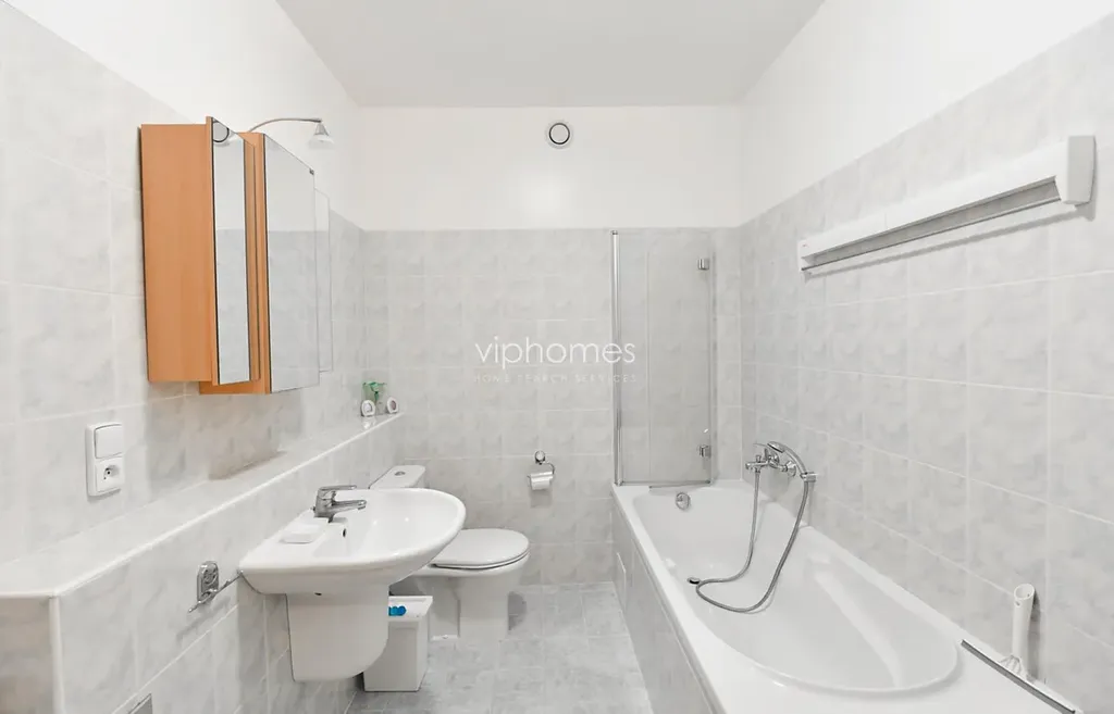 Interiér bytu nabízí obývací pokoj s moderním kuchyňským koutem, 1 ložnici, koupelnu s WC a šatnu. Pokoje jsou průchozí, z ložnice i z obývacího pokoje vstup na terasu. Byt je v dostupnosti tramvaje – směr metro Dejvická, autobus – letiště. Součástí pronájmu je garážové stání a sklepní kóje. Telefonní linka, SAT a kabel plně k dispozici. Recepce