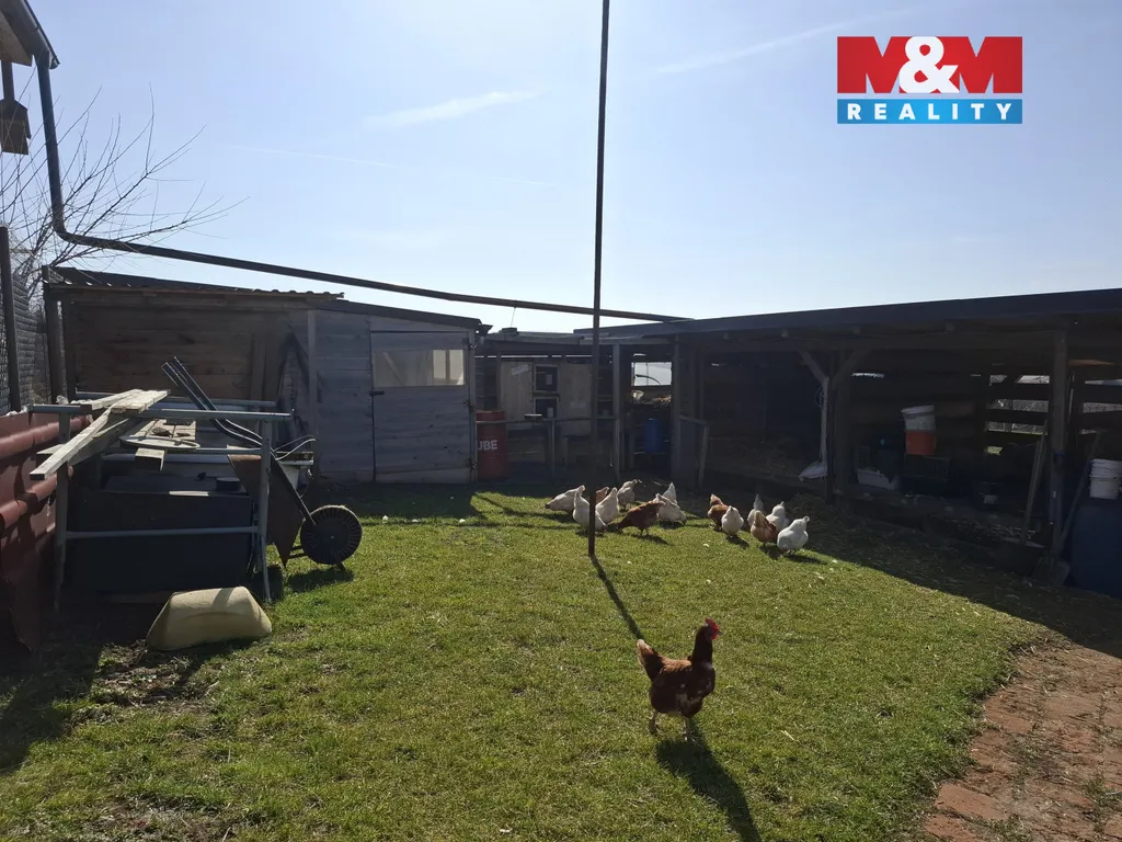 Z hospodářských budov je přívod dešťové vody do nádrží a vedením na zahradu. Nyní chov slepic a 36 králíkáren s výběhem. Je prostor i pro chov koní.