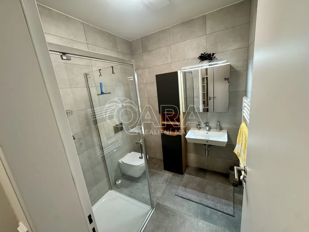 K dlouhodobému pronájmu nabízíme zařízený, prosvětlený byt 1+kk o celkové ploše 42 m² s zahradou o velikosti 10 m², umístěný v 1. nadzemním podlaží. Byt je plně zařízen novým nabytkem podle fotografii, hlavni misnost je chytre rozdelena na nekolik zon: jidelnou, obyvaci, loznici. Kuchynsky kout je oddelen, dale pred koupelnou se jeste nachazi technicka mistnost, kde jsou naistalovana pracka, vesak s polickami. V predsine je velka satni skrin.