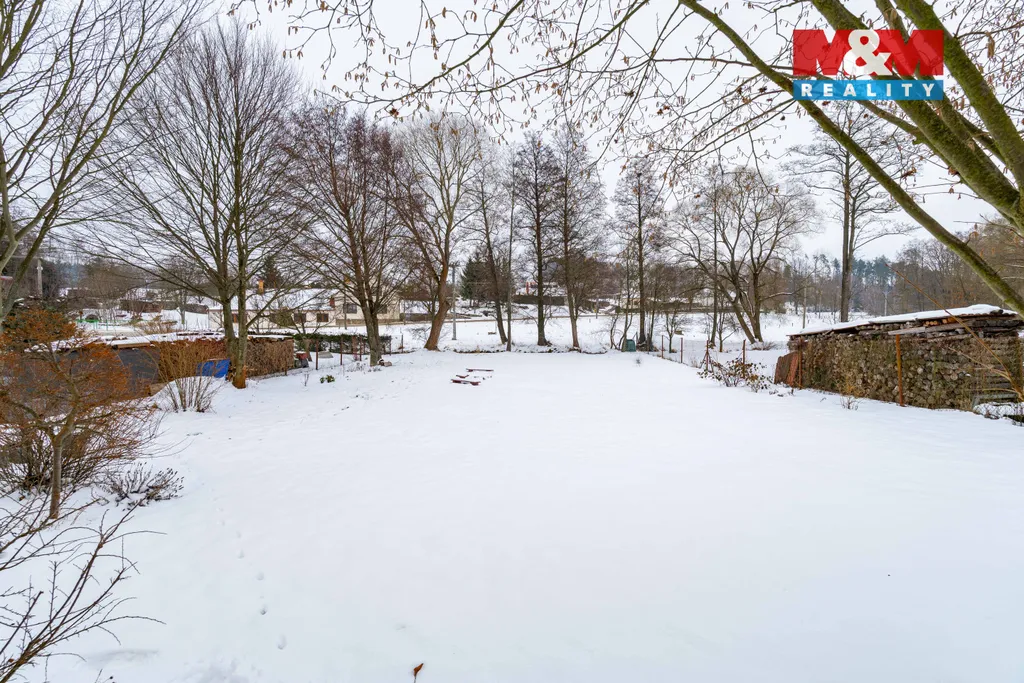 Velkým benefitem je terasa s jižní orientací, přístupná z obývacího pokoje velkým francouzským oknem – ideální místo pro ranní kávu i letní posezení s rodinou. Na konci zahrady protéká potok s dostatkem vody, který dodává pozemku jedinečnou atmosféru. Praktickým prvkem je také samostatný přístup na zahradu bránou z ulice vedle domu.