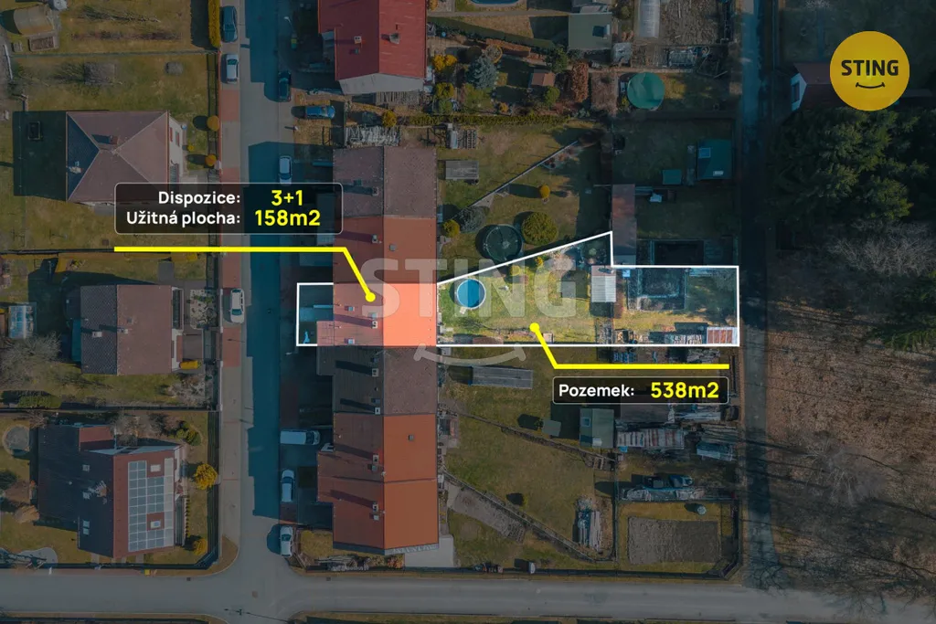 Dům byl postaven v letech 1986–1989, kolaudován v roce 1989. Jedná se o dvoupatrový, celo podsklepený dům se zastavěnou plochou 104 m². Součástí je krásná, udržovaná zahrada o výměře 394 m² s malým jezírkem a vzrostlou vegetací. Zahrada je orientována na jihozápad, vstup do domu na severovýchod. Přímo za zahradou se nachází les, který zajišťuje maximální soukromí, klid a ticho.