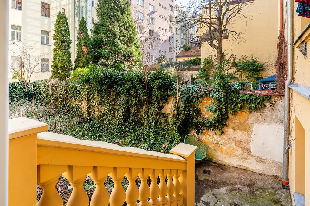 Byt má okno do tiché zahrady, která je ve vlastnictví domu.