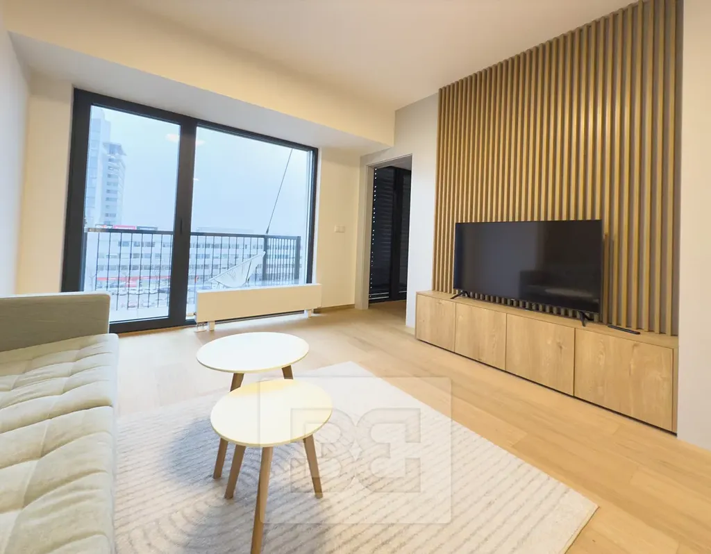 Nabízíme k pronájmu krásný moderní plně vybavený byt 2+kk, s plochou 43 m², a s balkonem o výměře 3 m² s výhledem na vltavu. Byt se nachází v 5. podlaží novostavby situované v krásné a vyhledávané lokalitě Holešovice.
