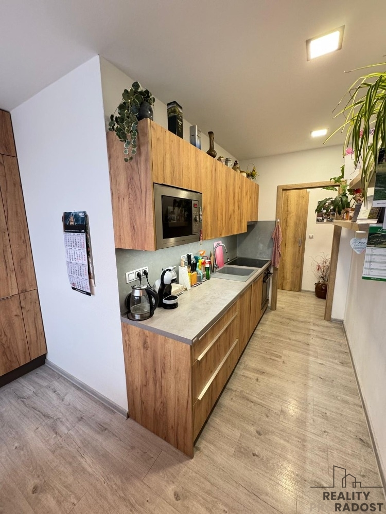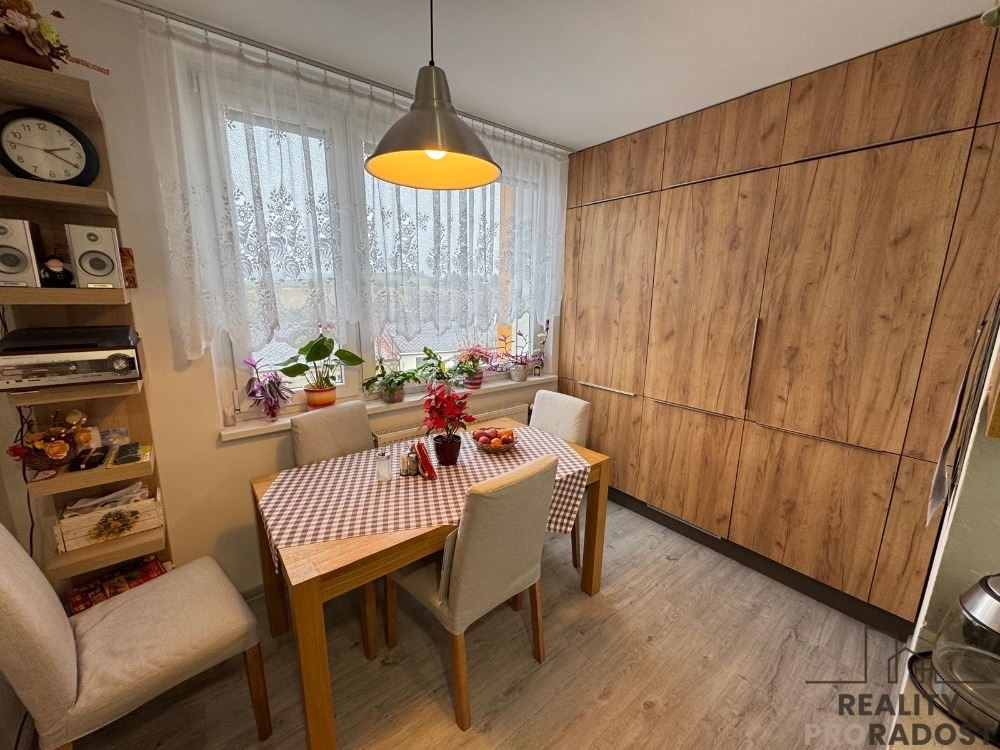 Nabízíme vám výhradně ke koupi byt o dispozici 3+1 se zasklenou lodžií na ulici Komenského v Grygově. Byt se nachází v posledním patře čtyřpatrového bytového domu s výtahem a disponuje užitnou plochou 75 m². Celková rekonstrukce bytu proběhla před třemi roky. Z bytu, s orientací na východ, je krásný výhled do okolí. Byt se prodává částečně vybavený. V domě ústřední vytápění, ohřev vody řešen novým elektrickým bojlerem umístěným v koupelně. Nová elektřina a stupačky. Bytový dům prošel v roce 2008 revitalizací, nová střecha, výměna oken za plastová a kompletní zateplení. K bytu navíc náleží sklepní kóje. Byt je velice dobře dispozičně řešený. Obývací pokoj, koupelna se zděným jádrem, ložnice, komora a kuchyně jsou propojeny dlouhou chodbou. Za kuchyní se nachází poslední pokoj, který je jediný průchozí z kuchyně. Bezpečnostní dveře do bytu. Podlahy nové lino. V oknech žaluzie. Internet wi-fi, TV satelit. V obci je výborná občanská vybavenost jako pošta, lékař, škola, školka, vyhlášená pizzerie, potraviny a kadeřnictví. V obci se nachází sportovně rekreační areál. Dostupnost do Olomouce vlakem či autem do 10 minut. Veškeré dotazy a právní info vám rádi poskytneme. Byt volný nejpozději od 1.7.2026. PENB není dosud dodán, tedy třída G.